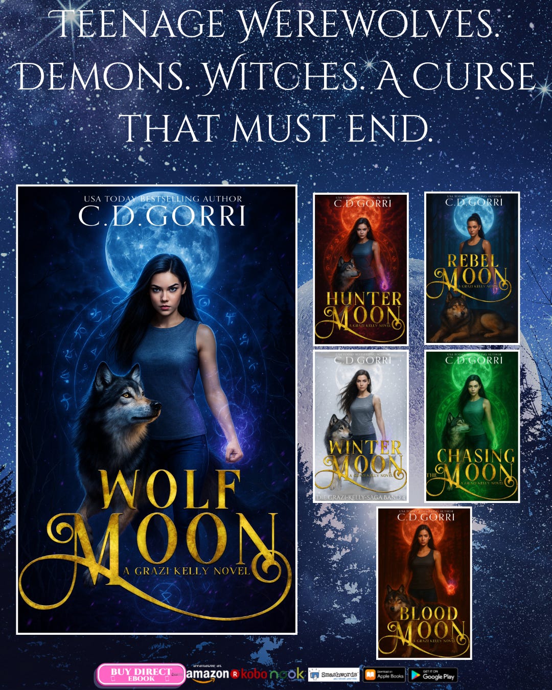 In Hunter Moon, I introduced Rafe Maccon—that’s right, the very first paranormal romance male main character I ever wrote. Some of you might have met him already in my permafree book Charley’s Christmas Wolf (if not, grab it here ➡️ https://www.cdgorri.com/books/charleys-christmas-wolf).